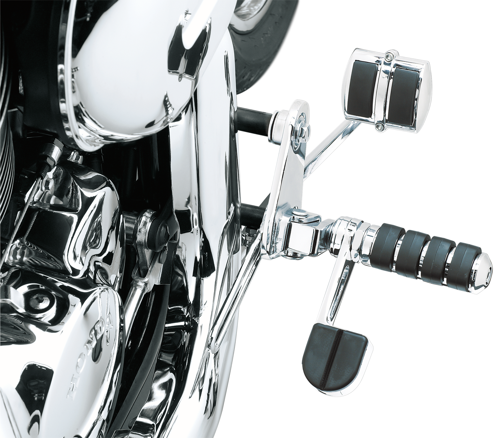• Хромированная двухсекционная крышка-раскладушка окружает конец педали тормоза, прикрывая грубую, неровную поверхность