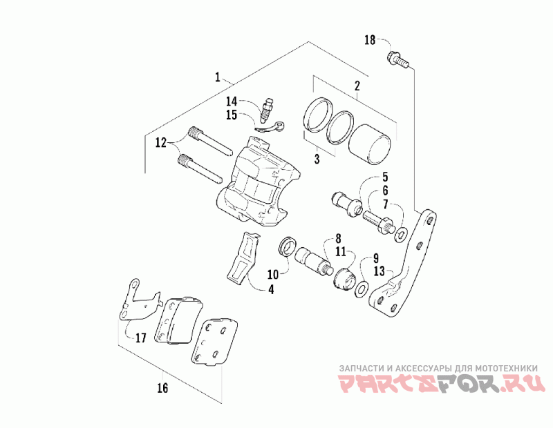 3406-030 Деталь Caliper Assy, Front (inc. 2-15) | Деталь Caliper Assy, Front (inc. 2-15) | ||