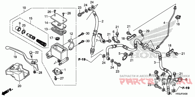 10 | 45510-HR3-305Деталь MASTER CYLINDER SUB-ASSY., FR. BRAKE (COO) (NISSIN) | Деталь MASTER CYLINDER SUB-ASSY., FR. BRAKE (COO) (NISSIN) | |