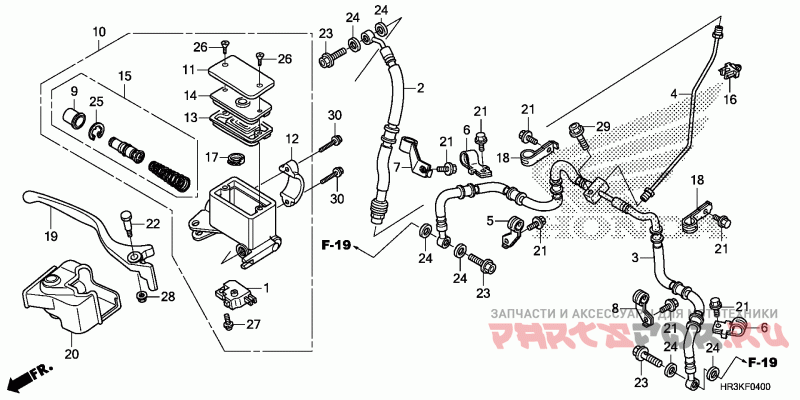 10 | 45510-HR3-305Деталь MASTER CYLINDER SUB-ASSY., FR. BRAKE (NISSIN) | Деталь MASTER CYLINDER SUB-ASSY., FR. BRAKE (NISSIN) | |