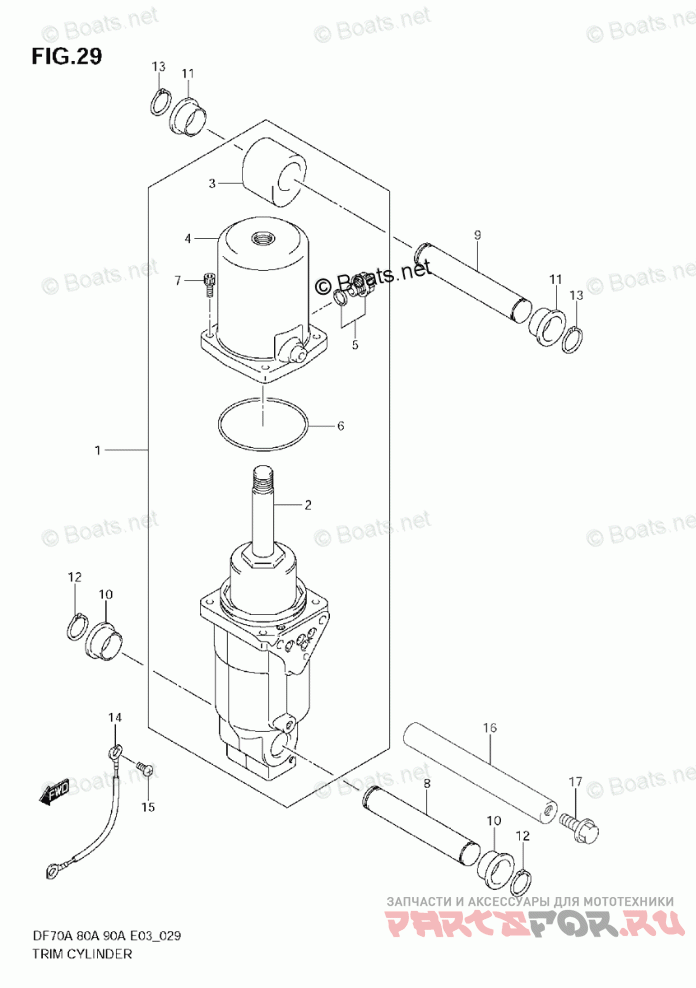 Деталь SHAFT, TILT CYL LOWER *{DF70A:110001~ DF80A:110001~ DF90A:110001~}*