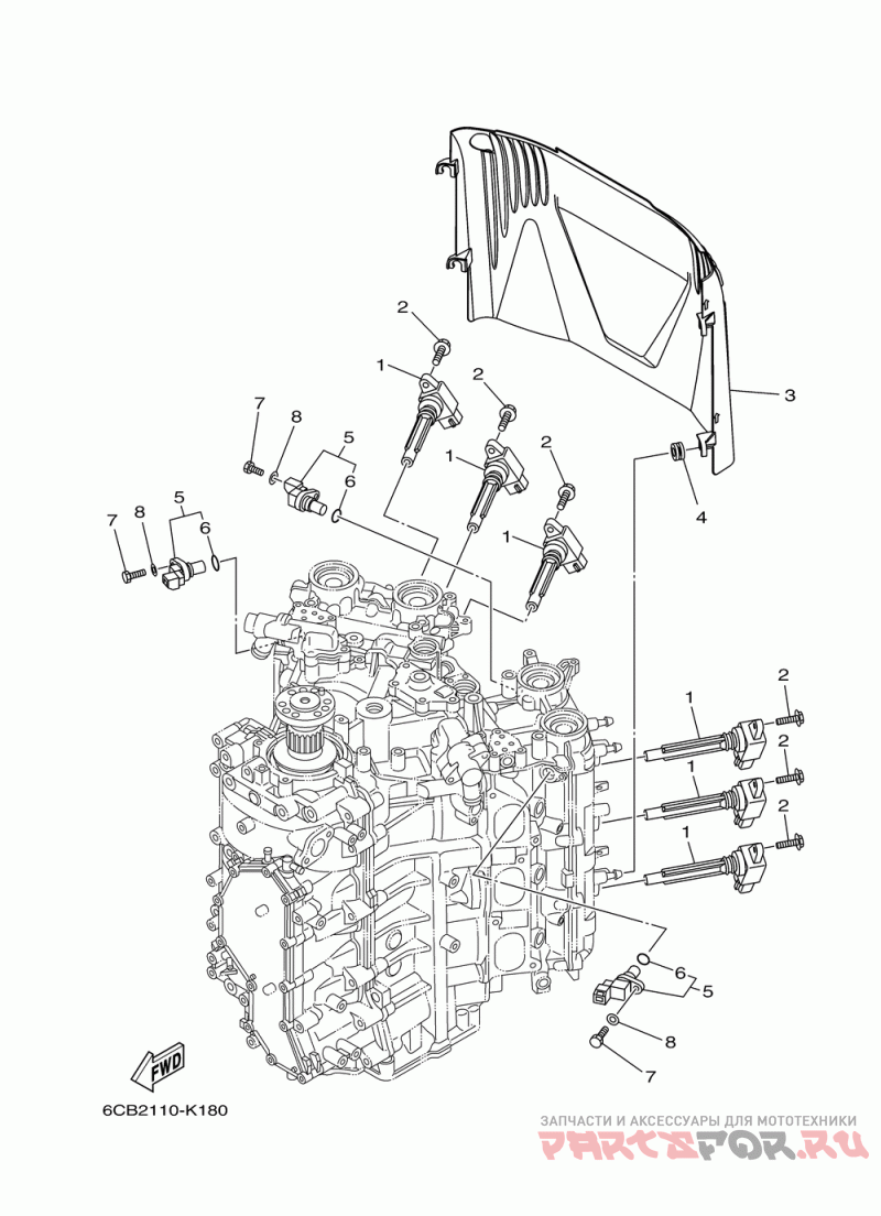 3 | 6CB-82314-00-00 Деталь Cover, Ignition Coil | Деталь Cover, Ignition Coil | |