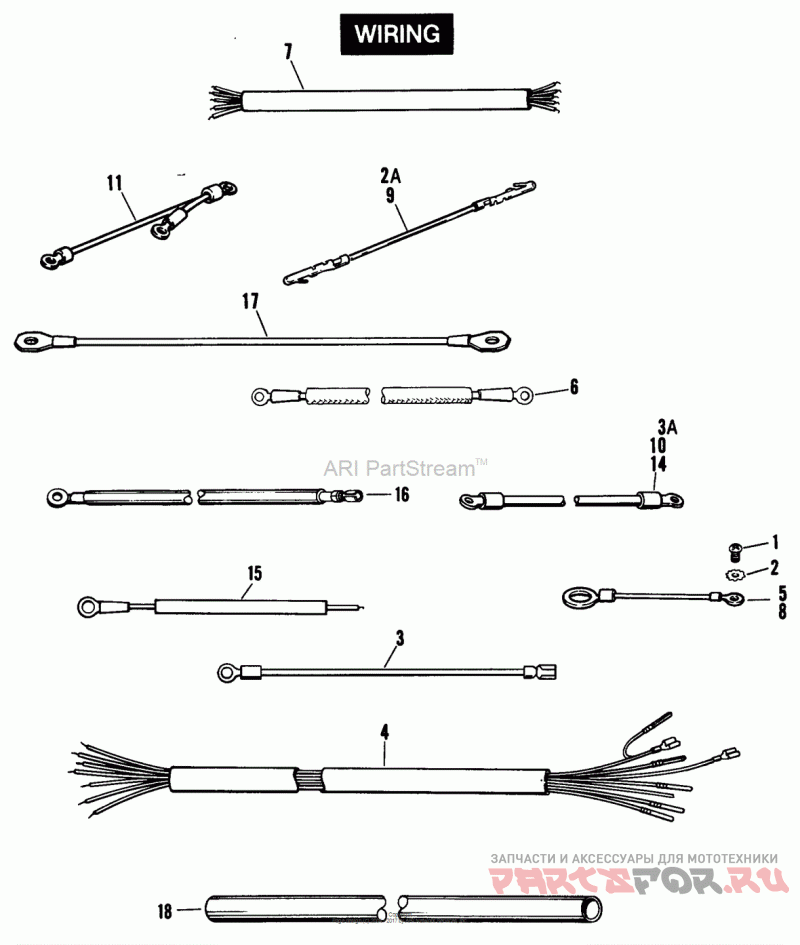 18 | 70553-69Деталь CONDUIT, 7/16 I.D. x 10 ft. lg. (black vinyl) 71 to * - All Models | Деталь CONDUIT, 7/16 I.D. x 10 ft. lg. (black vinyl) 71 to * - All Models | |