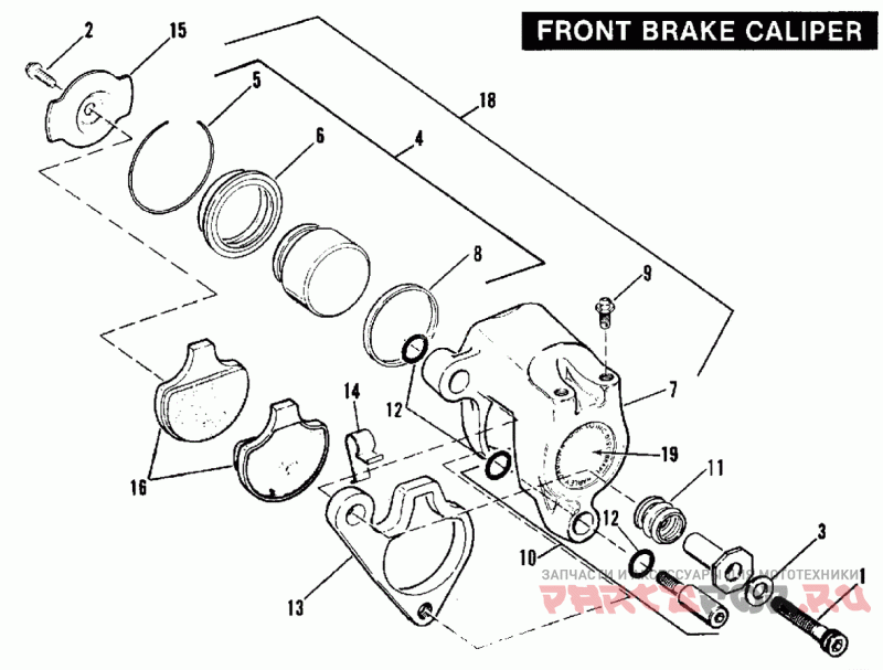 19 | 44197-77 Деталь LABEL, front brake caliper | NOTE: NOTE: This kit is contained within the CALIPER REBUILD KIT | Деталь LABEL, front brake caliper | NOTE: NOTE: This kit is contained within the CALIPER REBUILD KIT |