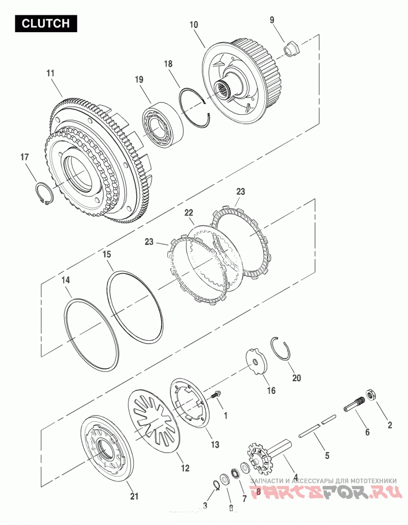 23 | 37932-98Деталь FRICTION PLATE KIT, includes all nine friction plates | 99 to * -All Models | Деталь FRICTION PLATE KIT, includes all nine friction plates | 99 to * -All Models | |
