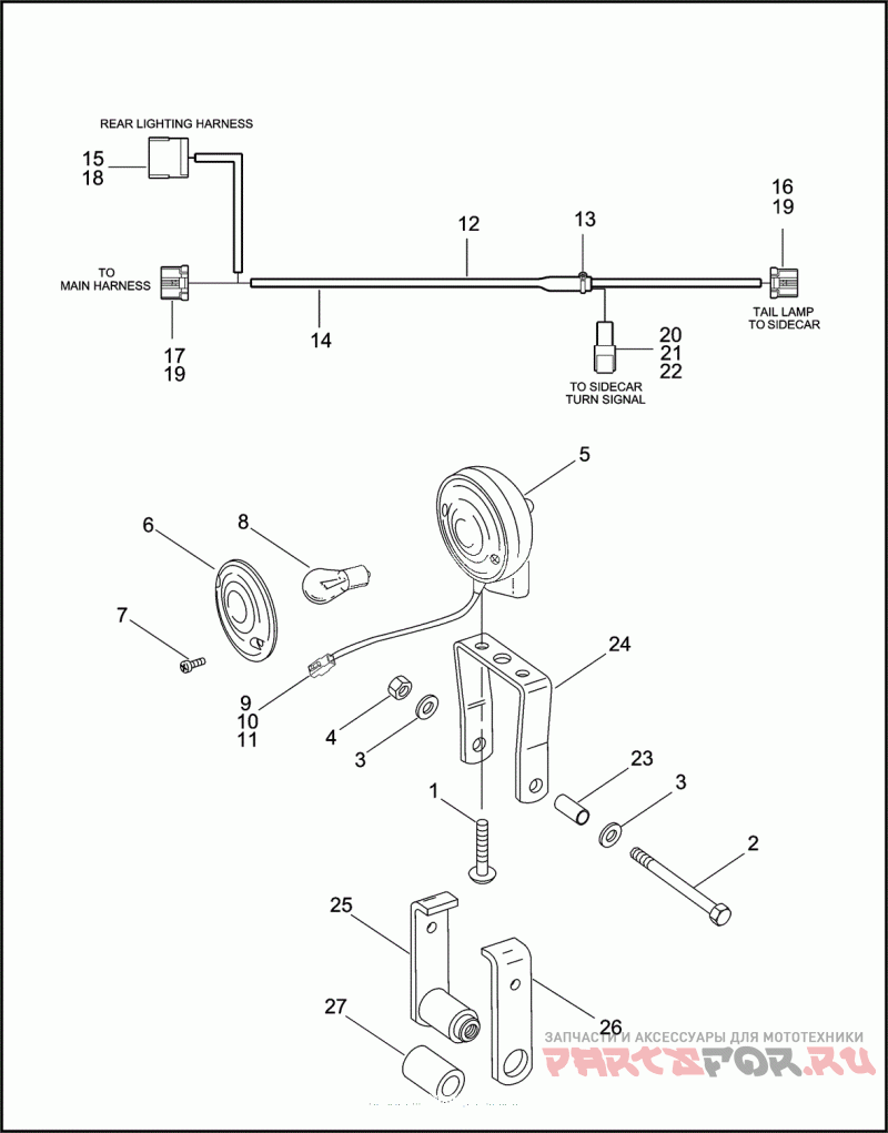 Деталь WIRING HARNESS sidecar lighting, w/ 13 - 22 | TLE/TLEU