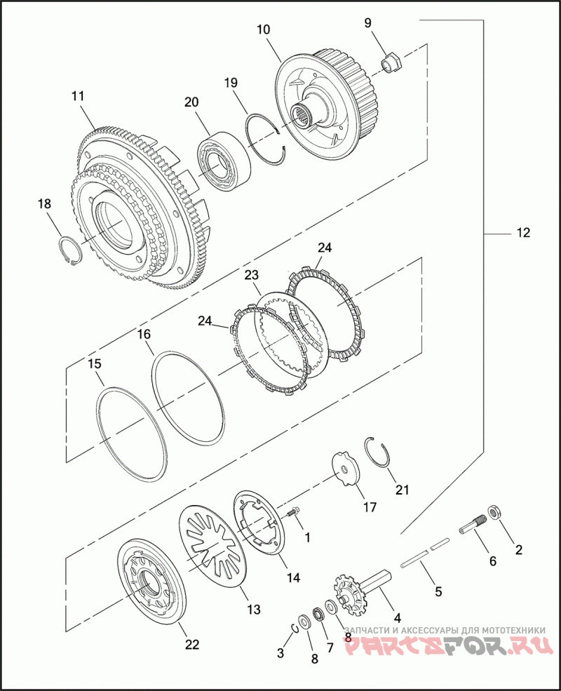 Деталь CLUTCH ASSEMBLY W/ 1, 9, 10, 11, 13, 14, 15, 16, 17, 18, 21, 22, 23 & 24