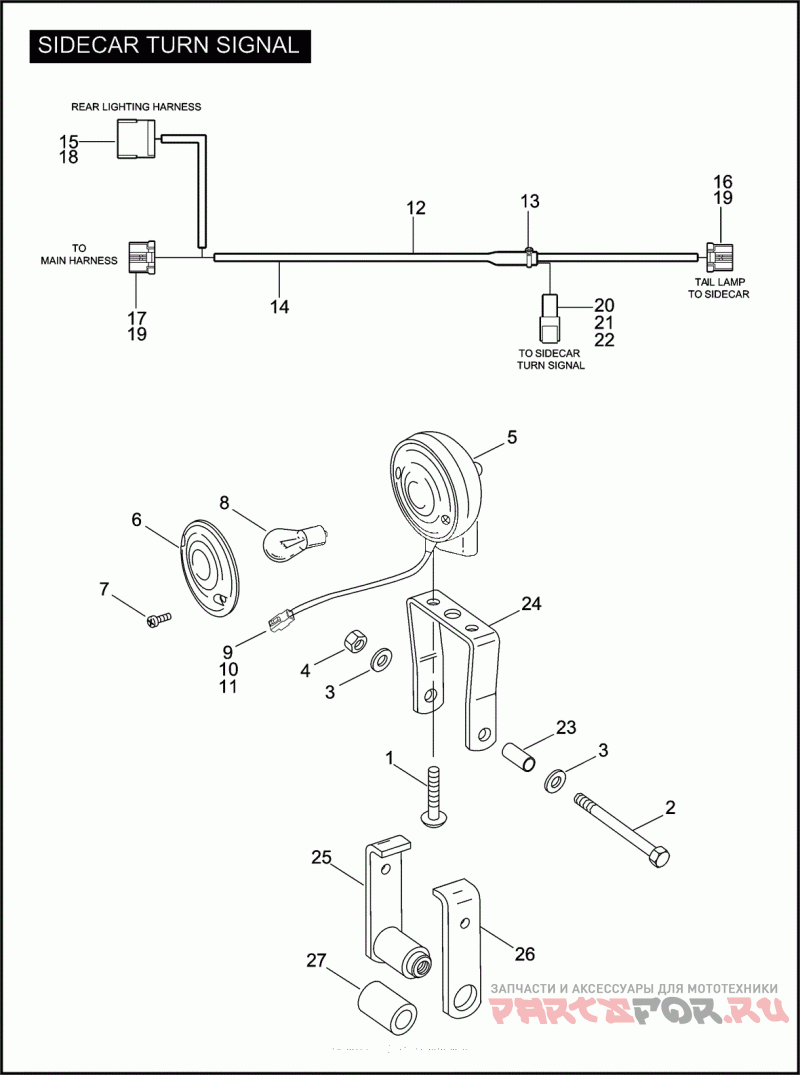 Деталь WIRING HARNESS sidecar lighting, w/ 13, 14, 15, 16, 17, 18, 19, 20, 21 & 22 | TLE/TLEU