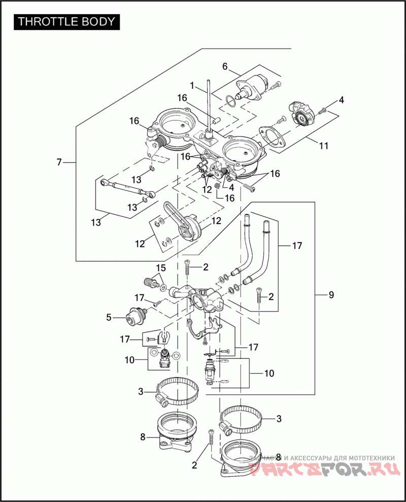 16 | 27995-01Деталь HARDWARE KIT THROTTLE BODY, W/ SHIM, CABLE BRACKET, WASHER SHAFT PURGE TUBE CAP, CLIP, SPRING, SCREWS & O-RING | Деталь HARDWARE KIT THROTTLE BODY, W/ SHIM, CABLE BRACKET, WASHER SHAFT PURGE TUBE CAP, CLIP, SPRING, SCREWS & O-RING | |