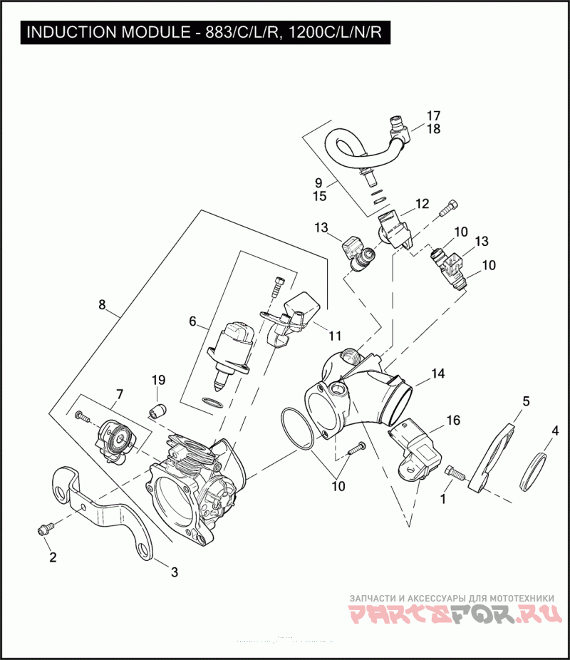 Деталь INDUCTION MODULE ASSEMBLY WITH FUEL RAIL, FUEL INJECTOR, INTAKE MANIFOLD, TMAP SENSOR, CAP, IAC KIT, TPS KIT, HARDWARE KIT