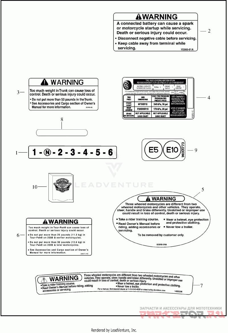Деталь LABEL,TIRE WARNING,FLRT | tire warning (not shown)