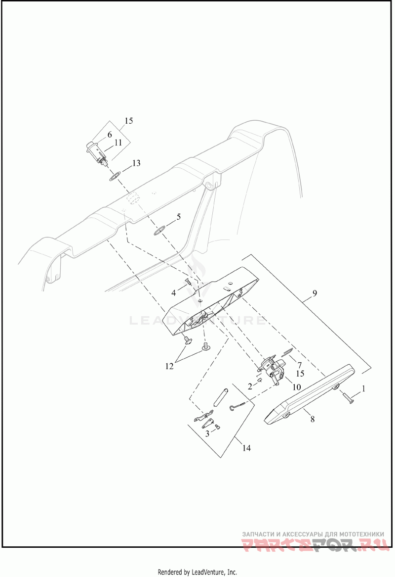 Деталь LOCK/LATCH ASY,TRUNK | trunk door, with 2, 3, 4, 8, 10 and 14