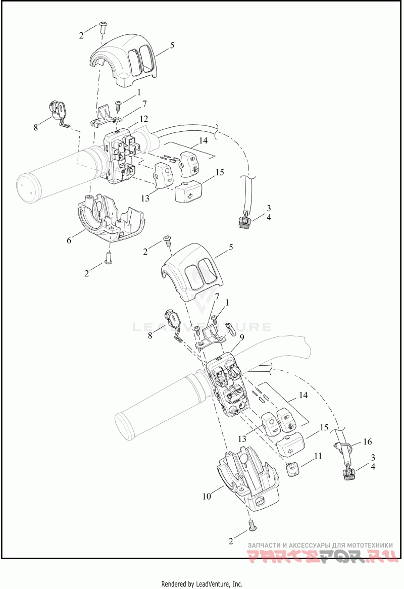 Деталь HAND CONT/SWGR,X | left, with 3, 4, 8, 11, 13, 14, 15