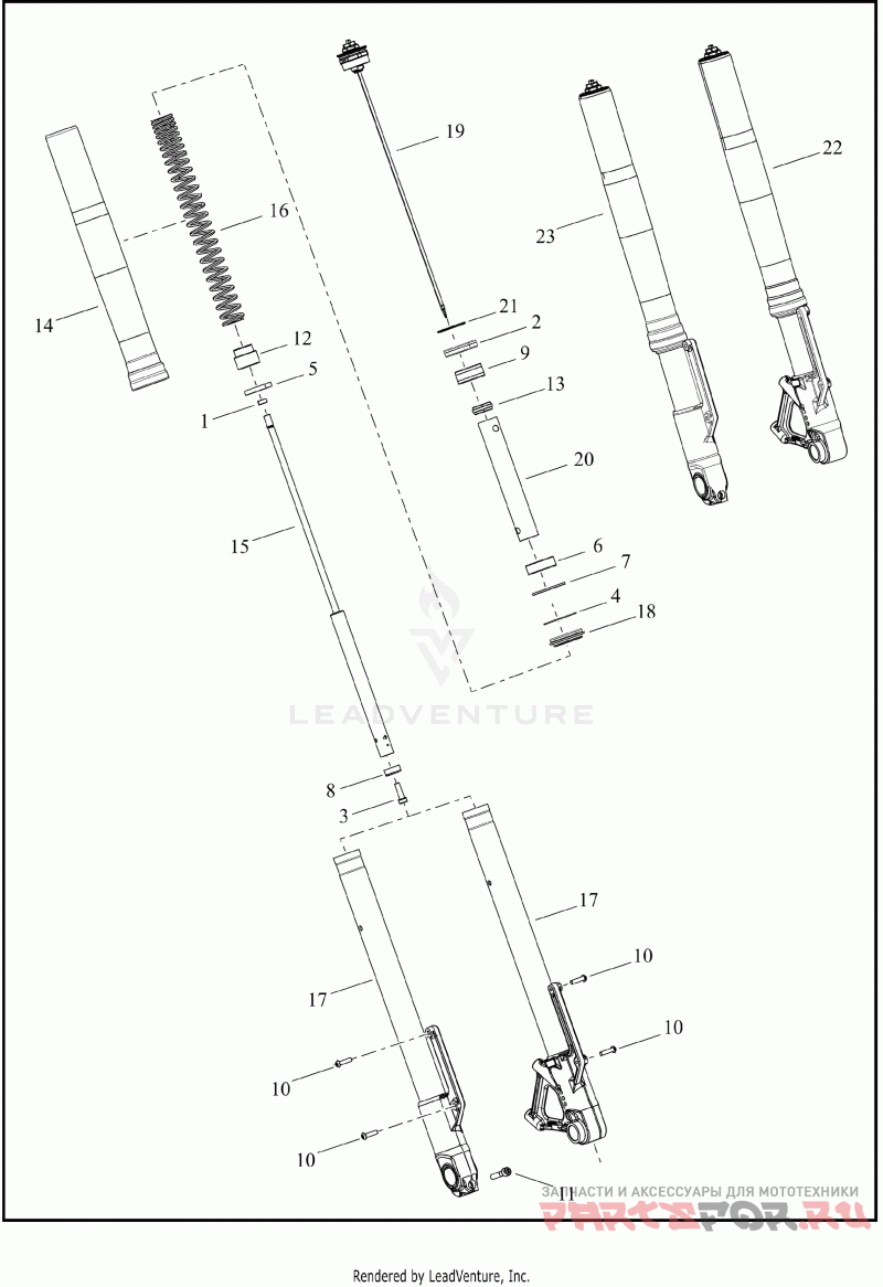 22 | 45400264Деталь FORK,FR TLSCP,LH,43MM,INV | (left) | Деталь FORK,FR TLSCP,LH,43MM,INV | (left) | |