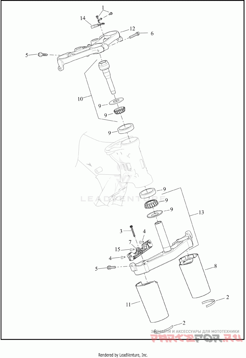 10 | 45700020A Деталь STEM ASY,UPR STEERING | upper steering, with bearing cone and dirt guard | Деталь STEM ASY,UPR STEERING | upper steering, with bearing cone and dirt guard | |
