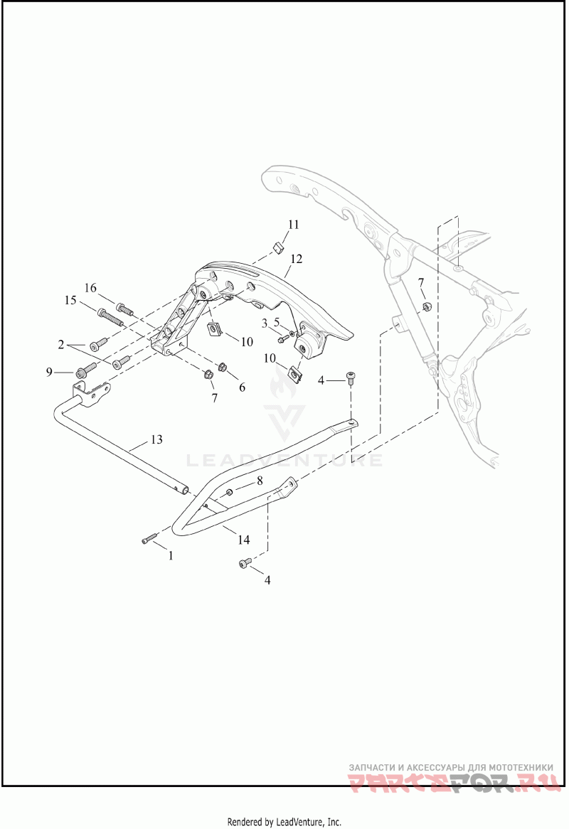13 | 90200504Деталь TUBE ASSY,LOWER, RH | saddlebag (right) (black) | Деталь TUBE ASSY,LOWER, RH | saddlebag (right) (black) | |