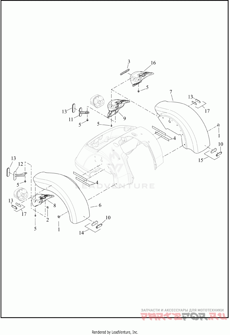 Деталь FENDER,RR,LH,PNSTRP | left, rear, with 10102, color code M43, Whiskey Fire, FLTRT chrome trim option