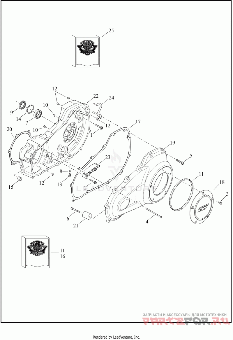 16 | 25700746Деталь KIT,CVR/SLG,INNER PRIMARY | inner primary with 11105, 12052A, 25700378, 25700455, 37909-90, 786A and clutch cover gasket | Деталь KIT,CVR/SLG,INNER PRIMARY | inner primary with 11105, 12052A, 25700378, 25700455, 37909-90, 786A and clutch cover gasket | |