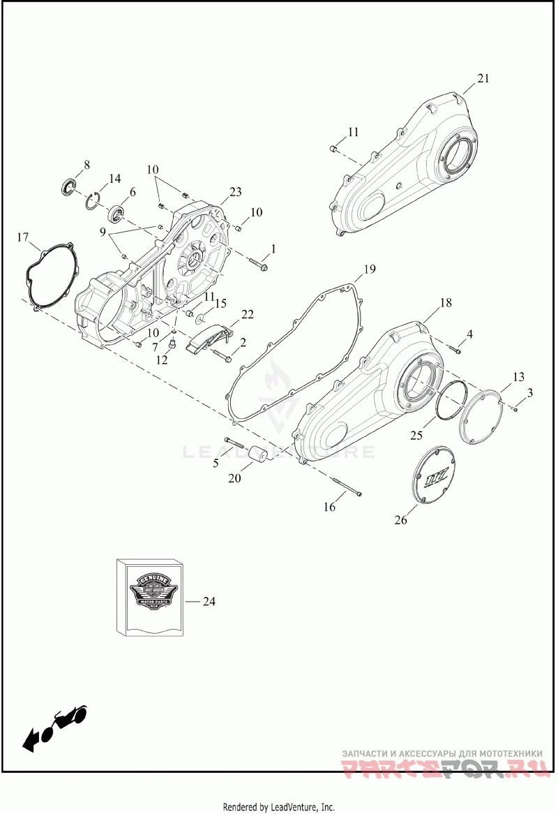 Деталь KIT,CVR/SLG,INNER PRIMARY | inner primary, with 786A, 11105, 12052A, 25700455, 25700564, 25701080 and 37909-90