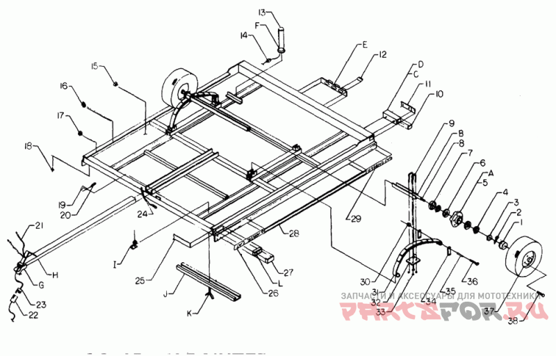 B | 0696-026 Деталь Axle-w/spindles | Деталь Axle-w/spindles | |