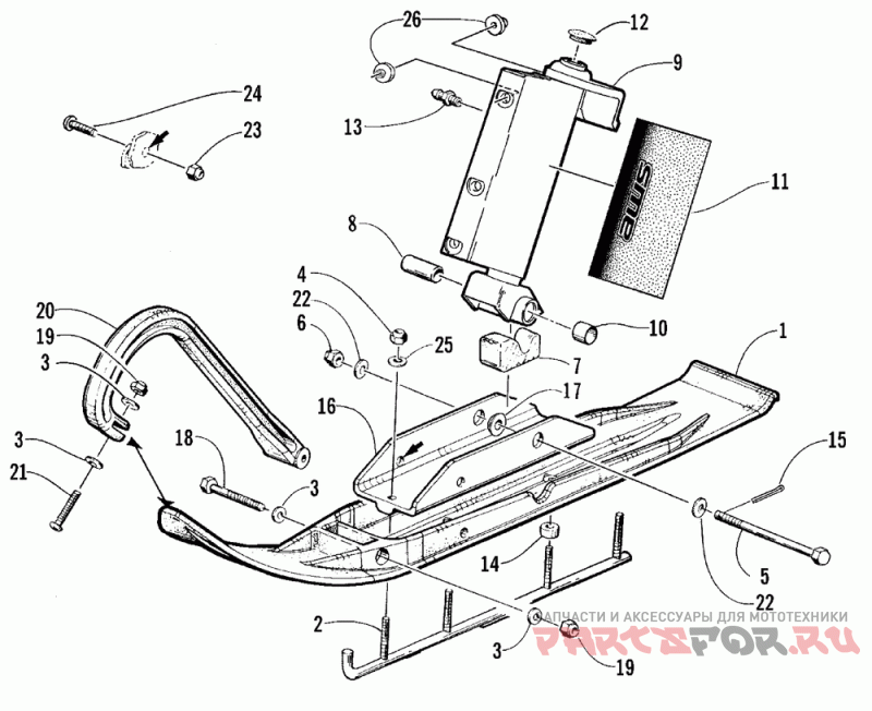 (inc. 17) | Деталь Saddle, Ski W/inserts - Assy