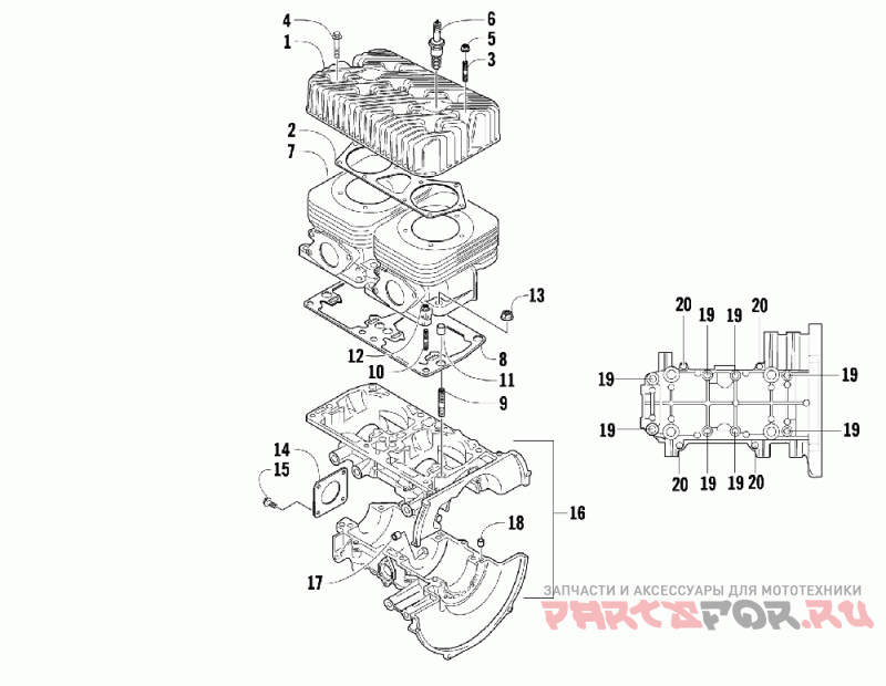 16 | 3007-676 Деталь Crankcase Assy-570 F/c (inc. 17-20) | Деталь Crankcase Assy-570 F/c (inc. 17-20) | |