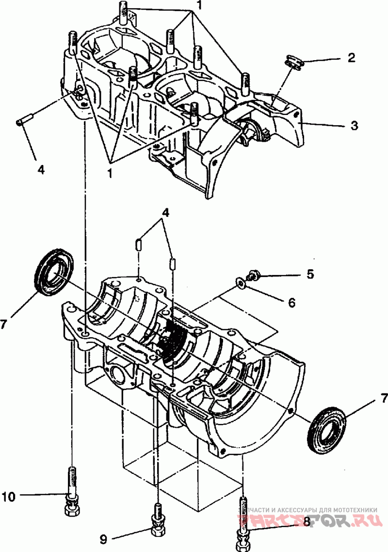 Деталь Crankcase (incl. 1, 4, 4, 8-10)